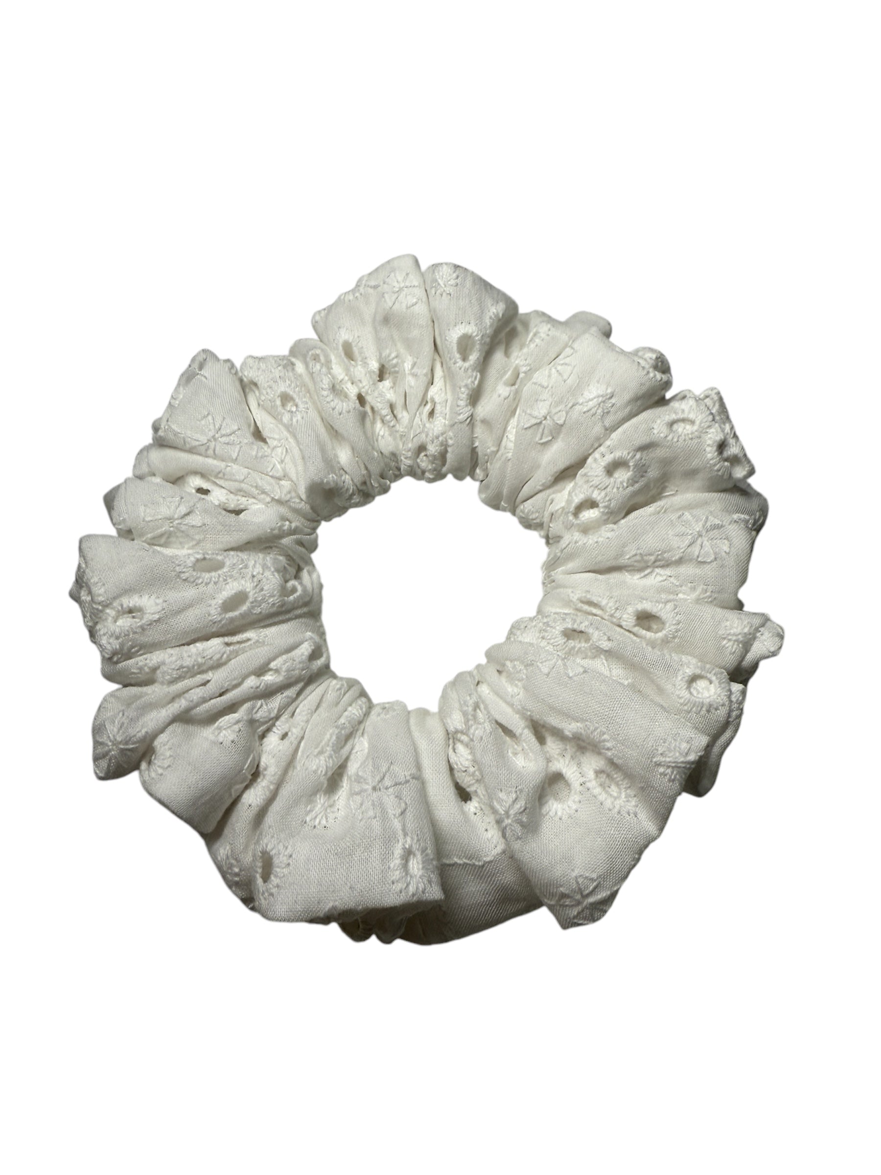 Tato scrunchie z madeiry s jemnými květinovými výšivkami je synonymem romantiky a čistoty. Díky prodyšné bavlně je velmi lehká a pohodlná. Perfektně vynikne ve tmavých i světle blond vlasech, kterým dodá zářivý a sofistikovaný vzhled.
